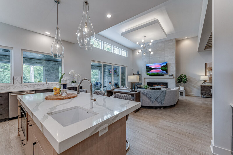 The Signature Collection III was designed as a forward-thinking model home for the Parade of Homes—built to inspire and accommodate the evolving needs of families at every stage of life. With living-in-place features like zero-threshold transitions, wide walkways, and thoughtful flow, the home blends comfort, accessibility, and style in a single story. While designed as a showcase, it tells a relatable story: a modern ranch for entertaining, relaxing, and living fully—with no detail overlooked. The layout balances form and function, with standout elements like a custom three-tone kitchen, a quartz-clad hood, backlit floating ceiling panels, and asymmetrical design moments that add energy and movement to each space. With its layered textures, clean lines, and purposeful pops of color, the home speaks to both design lovers and practical homeowners alike.